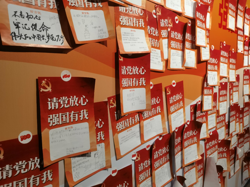场馆内有诸多屏幕,巡回播放先烈们的英勇事迹与党的艰难发展史;还有众多纪念雕像与油画,栩栩如生的样子,似乎跨越时间,与这盛世对望;还有更多的先烈遗物,李大钊同志的防身手枪、周恩来同志穿过的中山装、陈独秀同志等人用过的祖传笔筒与祖传墨……这种种,似乎凝聚了那个时代伟人们的伟大精神,通过这次参观,这精神延续到了我们身上。新时代的青年们,当继承先辈们的意志,为祖国的强大与昌盛前赴后继,正如那个时代的伟人们一般。