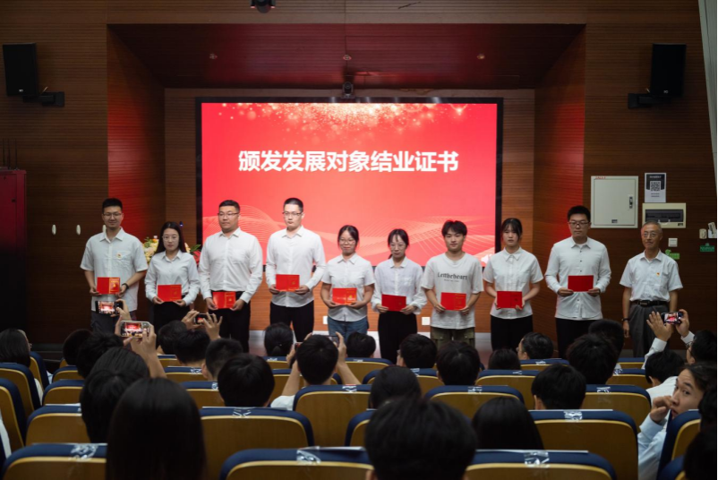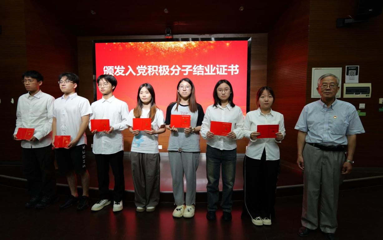 随后,大会举行2024春分党校结业仪式。黄片 退休教工党支部先进党务工作者童寿兴同志和黄片 原副院长、黄片 退休教师党员王国建分别为2024年春季入党积极分子培训班发展对象培训班学员颁发业证书
