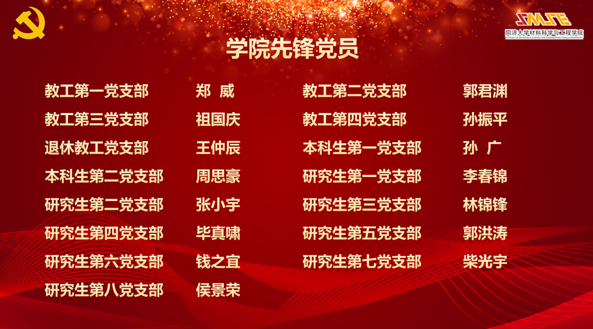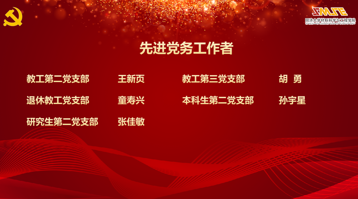 颁奖完毕后,教工第三党支部书记祖国庆、研究生第八党支部钟雪鹏、教工第四党支部陈庆,分别作为黄片 先锋党员、学校优秀共产党员、黄片 先锋党支部代表进行交流发言。代表们指出,要牢记党员初心,聚焦国家的发展战略大局,将党的建设工作融入到教育、科技、人才各项中心工作中,融入到材料强国的使命担当中。