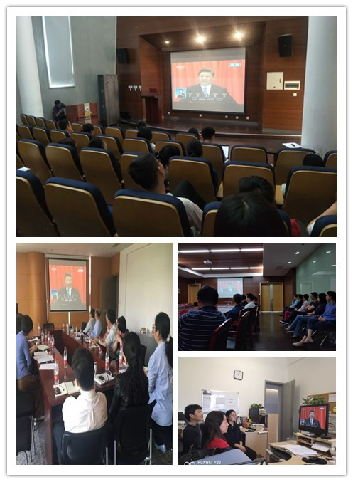 党政领导班子及学校审计处领导集中在同心楼收看直播,其余师生集中在德才馆二楼报告厅及441会议室收看。