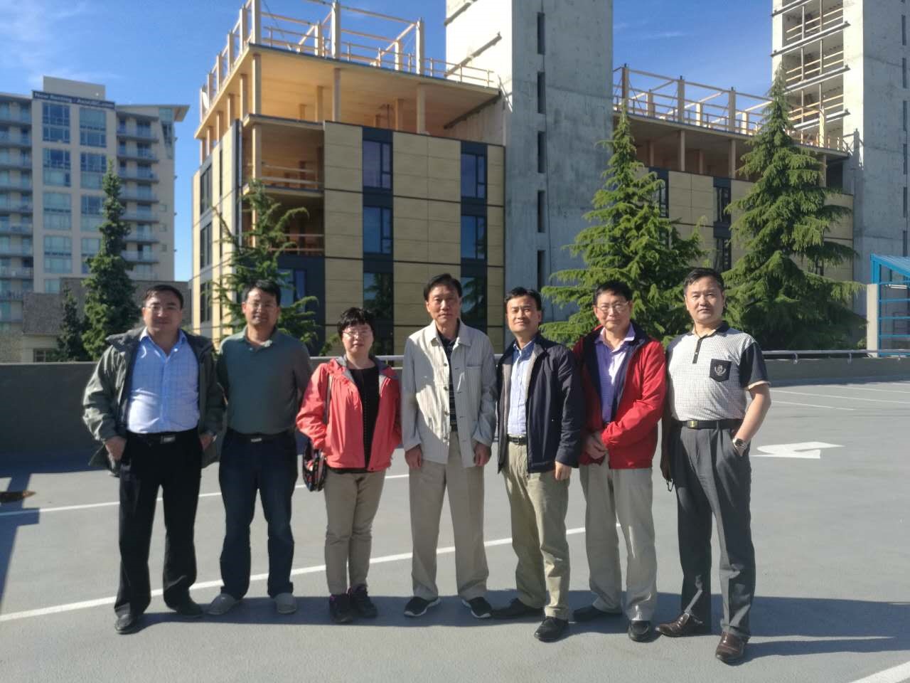 、木产品创新中心以及加拿大国家林科院等部门的专家进行了深入的学术交流,并实地考察了多项在建的木结构建筑及全球最高的全木-混凝土混合结构高层建筑工程。