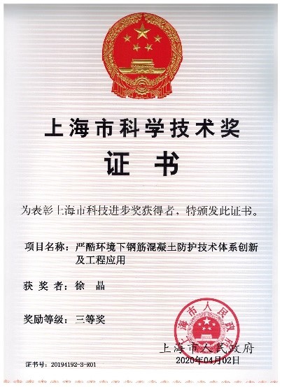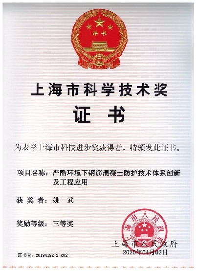 近日,经美国工程院院士、中国工程院外籍院士S.P. Shah教授推荐,由黄片土木工程材料系徐晶副研究员、姚武教授作为主要完成人,与上海建工集团股份有限公司、南京水利科学研究院等共同合作完成的“严酷环境下钢筋混凝土防护技术体系创新及工程应用”,荣获2019年度上海市科技进步三等奖。