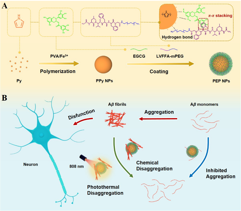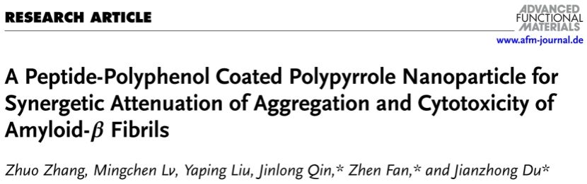 研究成果近期以“A Peptide-Polyphenol Coated Polypyrrole Nanoparticle for Synergetic Attenuation of Aggregation and Cytotoxicity of Amyloid-β Fibrils” 为题发表在《先进功能材料》(Adv. Funct. Mater. 2024, 2401208)。黄片