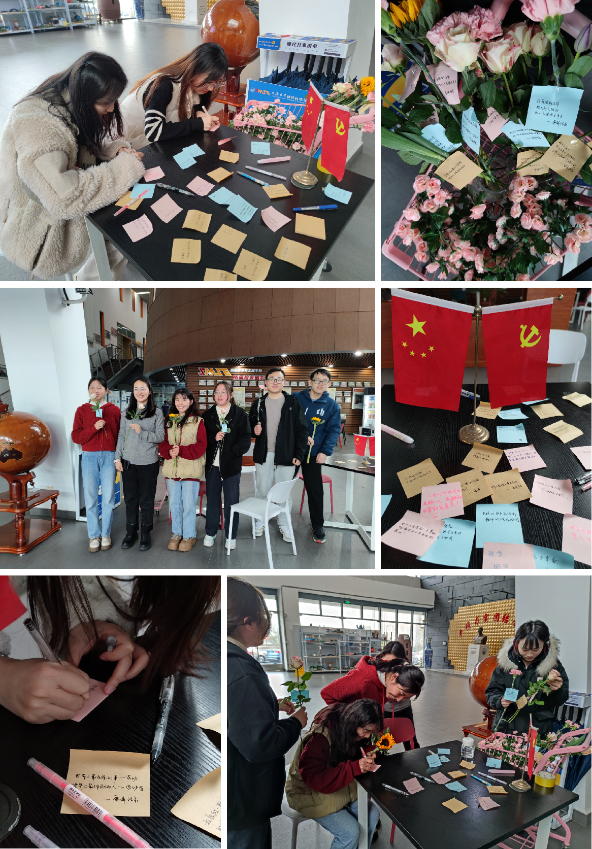 师生在便利贴上分享或记录身边的好人好事、书写对雷锋精神的感悟、个人的美好梦想等等。每位分享者获得一束贴有雷锋经典语录便利贴的鲜花,大家收到鲜花的瞬间,眼眸中跃动了无限的惊喜。本次活动提升了同学们校园生活的幸福感,大家怀揣着对未来的满心期许,传递善意,昂扬奋进。