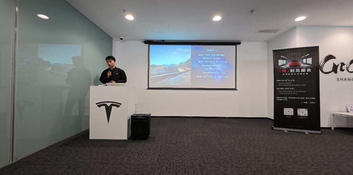 活动伊始,来自特斯拉的师怡怡女士和张冉店长热烈欢迎了同济师生的到来。全球特斯拉最年轻的店长张冉以“秘密宏图”为开端,揭示特斯拉的使命“加速世界向可持续能源的转变”,深刻阐述了特斯拉工厂制造的“第一性原理”和工厂创新管理的“极佳定律”,形象诠释了特斯拉的黄片和价值观念。
