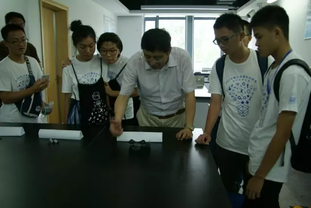 的樱花徽章作为纪念品,但获取条件还需要回答正确他讲座之中的问题。同学们闻此露出会意的微笑,并积极作好回答的准备。这之后,严彪老师结合“歼11”战机与《终结者》电影片段等贴近同学们的内容生动地展示了无机材料的发展前景,并通过问题循循善诱,启发同学们调动起自己课内的知识发掘科研创新的路径。同学与带队老师们皆投入其中,并用热烈的掌声为严彪老师的讲座画上句号。讲座的抛砖引玉过后,严彪老师带领同学们前往无机材料实验室,再次深入对于科学的探索。实验室里展出了磁性材料、记忆材料等多项内容,可以撕开的金属片、随温度伸长缩短的“弹簧”、还有神奇的磁流体,都让同学们大开眼界。由特殊材料制成的音响可以在玻璃上发出节奏的震颤,同学们外放着自己喜欢听的歌儿,随着歌声一面打着节拍,一面追问着音响的原理与构成。