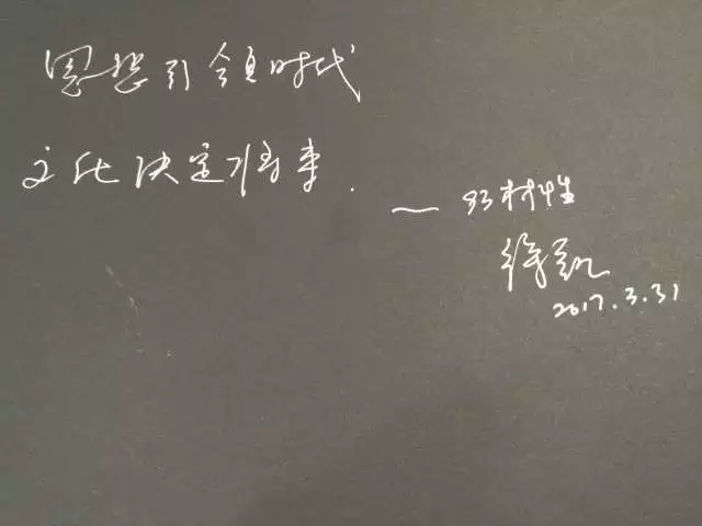 午餐会结束前,徐凯学长推荐同学一本书《中国哲学简史》,并在校友之家纪念册上题字:“思想引领时代,文化决定将来”,与学子们共勉,同时互赠了礼物,最后与学子们合影留念。