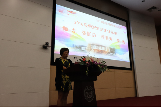 在校研究生代表2017级硕士张振刚欢迎“小鲜肉”们,他分享自己的大学生活经验,既要研究高深学问,也要养成健全人格;厚积薄发,坚持自己的理想目标。