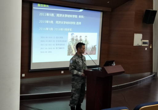 ,是一名土生土长的同济材料人。本科期间他成绩优异,创新能力强,保研至高分子材料系杜建忠教授课题组。怀揣着一颗赤诚的爱国之心,他于2016年9月应征入伍,2017年5月前往黎巴嫩执行为期一年的维和任务,今年9月退伍,回归科研学习生活。