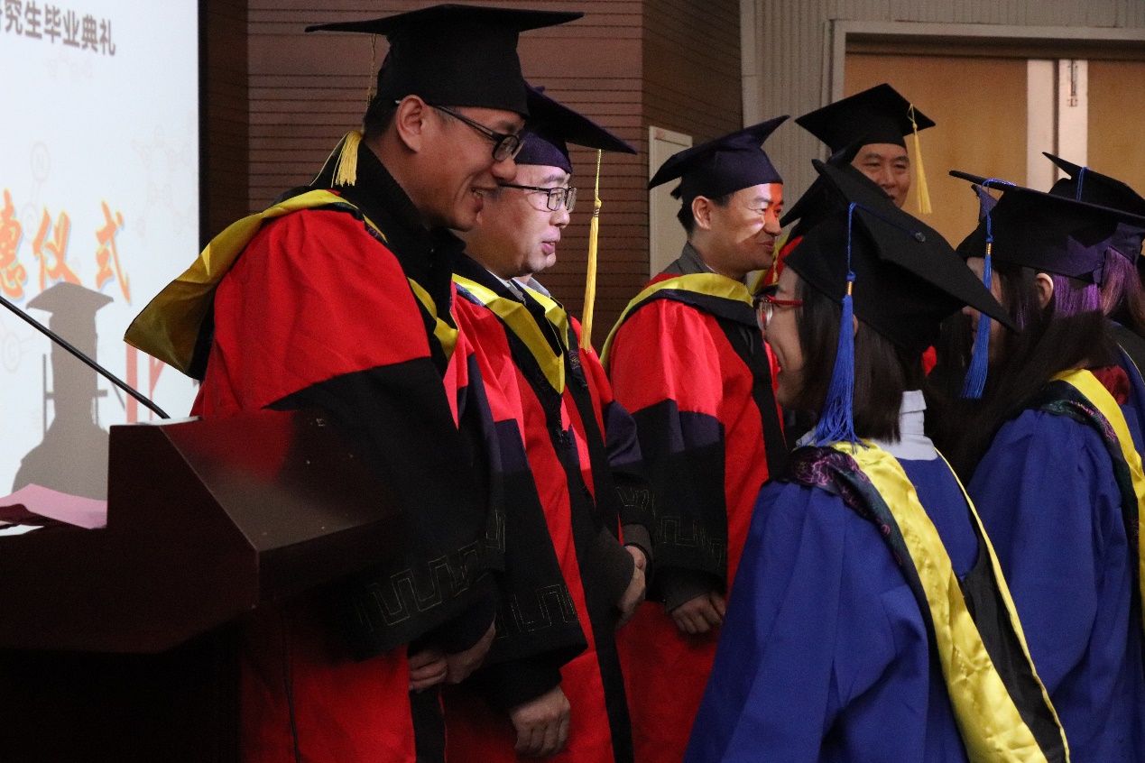 教师代表金明教授在睿智幽默的讲话中,表达了对学子们忠心的祝福,同学们要为自己感到骄傲,并对自己有充分的自信,最后还要懂得感恩。希望大家继续去探索这个庞大的世界,时刻保持着敏锐的感官对周围的一切变化做出感应,努力去用自己的专业技能来为我国乃至世界的发展做出贡献,回报社会,回报父母。同时,金老师真诚感谢了出席本次研究生毕业典礼的家长代表们,对家长们在研究生同学们成长成才的道路上付出的努力表示了由衷的敬佩与欣慰。金老师“如一篇论文般”的肺腑之言,意义深远,令同学们回味无穷。