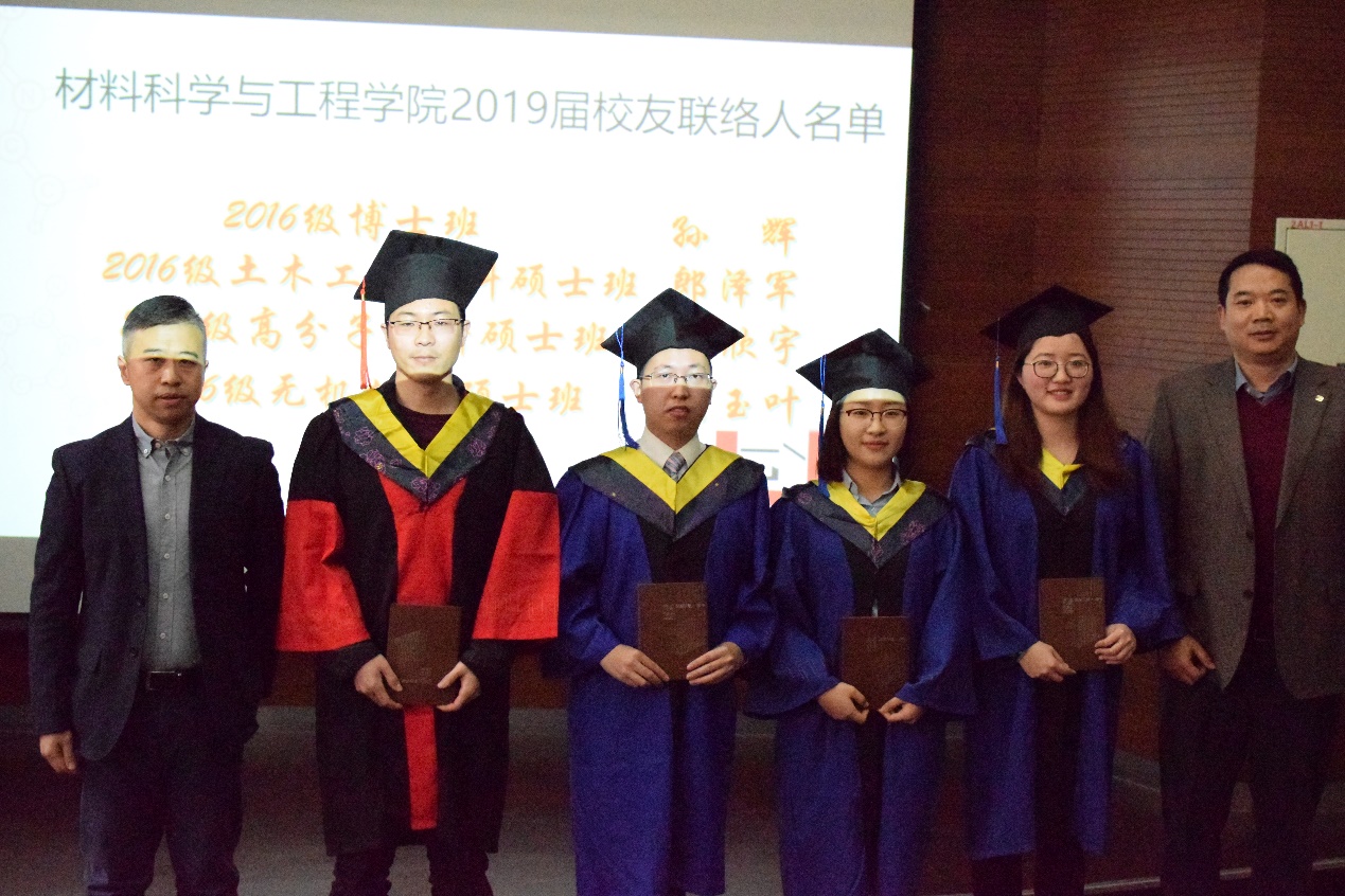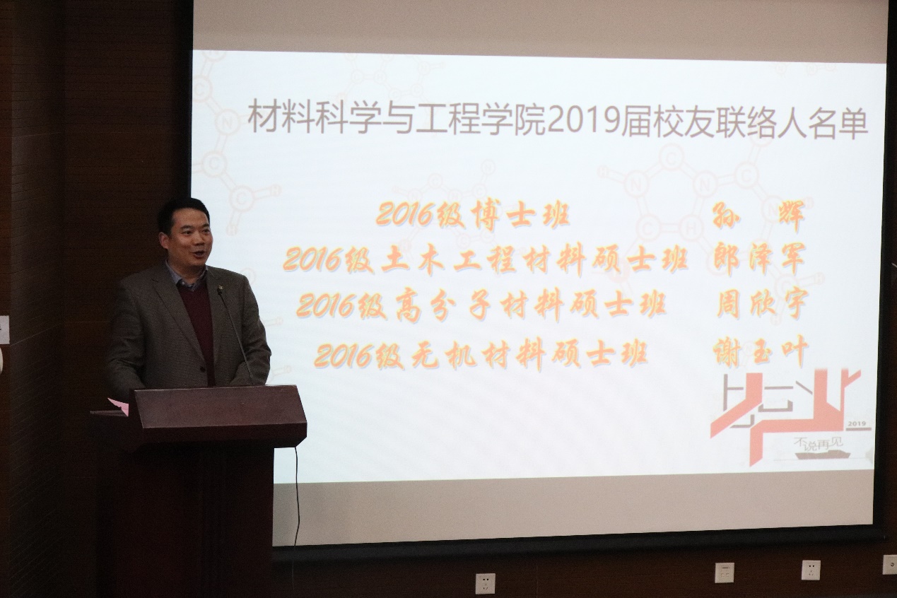 学院外联办主任张永明老师宣读了2019届研究生校友联系人名单,并与校友俞海勇一起为4位校友联系人颁发了聘书,希望同学们以材料学院为家,心系母校,常回家看看。