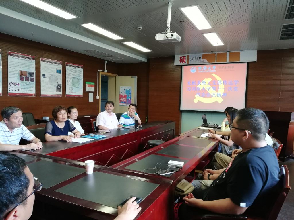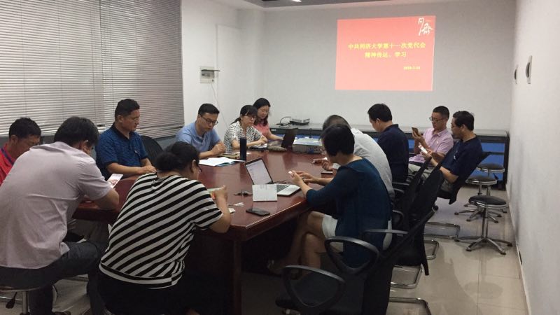 第十一次党代会刚刚结束,学院党委就安排布置传达学习学校党代会精神。7月10日下午,四个教工党支部分别在德才馆召开了支部大会,党代会代表王中平书记参加了建筑材料党支部、袁华副书记参加无机非金属党支部、王凌凌副书记参加了行政/实验室联合党支部、邱军副院长与杜建中系主任参加了高分子党支部的学习并传达了校党代会精神。