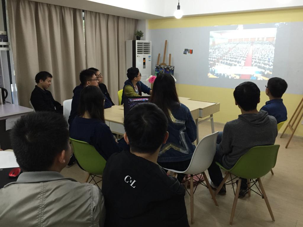 的学生党员与班级骨干代表在嘉定校区朋园1号楼学生社区中心共同观看了“纪念中国工农红军长征胜利80周年大会”的网络直播。