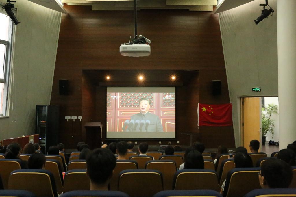党政领导班子、教师代表和莘莘学子共聚一堂,于嘉定校区济人楼101报告厅和德才馆2楼报告厅共同观看了“庆祝新中国成立70周年系列活动”。众多师生们热情地挥舞着手中的国旗,真诚地唱出心底赞歌,祝福祖国,生日快乐!