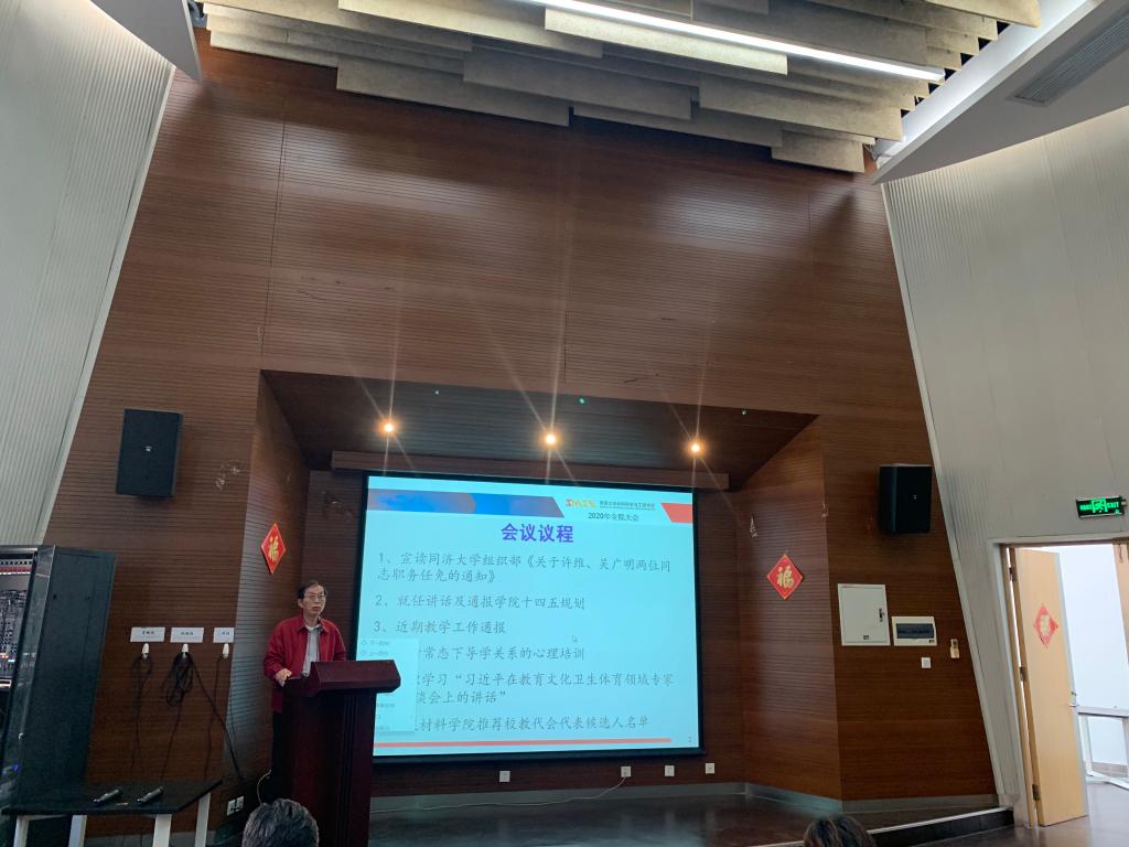 2020年第八次全院大会在德才馆二楼报告厅顺利举行,会议由学院党委书记王中平主持,主持行政工作副院长许维、党委副书记袁华、王凌凌、副院长翟继卫、邱军、姚武和全院教职员工共计一百一十余名参会。