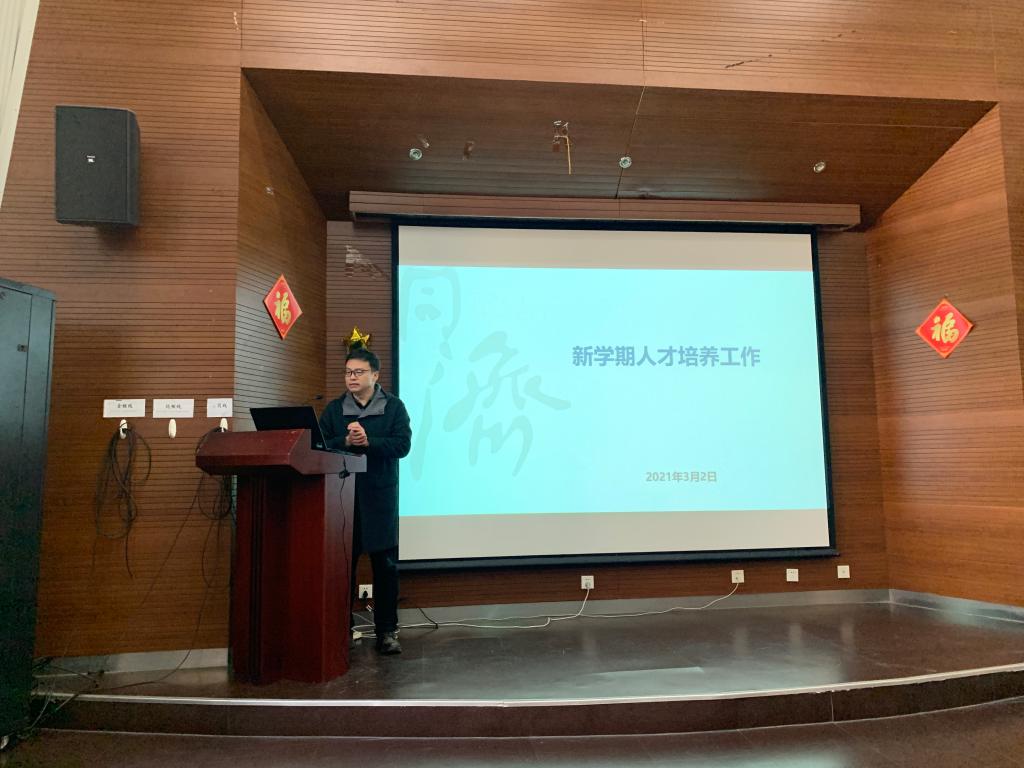 邱军副院长通报了本学期教学工作重点,包括:本科生毕业论文工作,2021年开始学校要求本科毕业论文全部要查重,需要各位师生重视;一流本科专业建设,按照做强一流本科、建设一流专业、培养一流人才,全面振兴本科教育,提高高校人才培养能力,实现高等教育内涵式发展,全面实施“六卓越一拔尖”计划2.0,启动一流本科专业建设“双万计划”的要求,从一流本科课程建设着手,启动材料科学与工程专业国家一流本科专业的建设工作;教学团队建设,结合学校三类责任岗位的制订实施,按照立德树人的人才培养理念,进一步规范教学管理制度,全面构建思政教育与专业教育有机融合的人才培养体系,发挥学院教学团队和督导组织的作用,以“立德树人”的基本要求指导2021级人才培养方案的修订,借助教学改革项目,通过持续改进中的过程监控提升教学质量。研究生培养方案修订和研究生招生工作,切实维护研究生招生工作的公正性、公平性和严肃性,进一步完善研究生招生工作制度,做好2021级研究生的推免、硕博连读、统考复试、博士资格审核等录取工作。