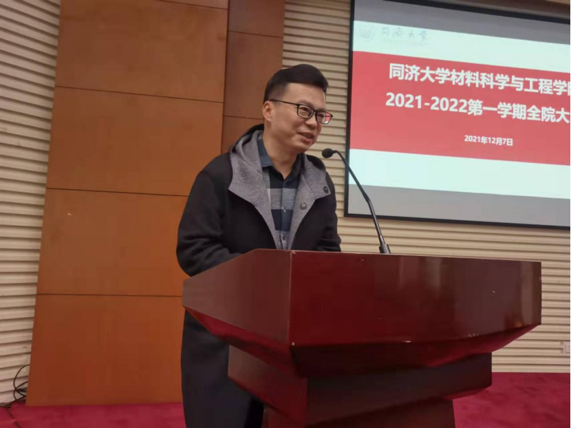 2021-2022学年第四次全院大会在嘉定校区同心楼224报告厅召开,会议通报学院换届启动工作及学院近期干部任免情况,院长许维主持会议,学院党政领导班子及全院教职工130余人参加会议。