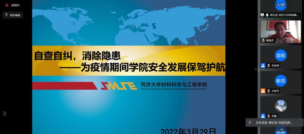 蒋正武副院长以《自查自纠,消除隐患——为疫情期间学院安全发展保驾护航》为题,对学院安全相关事项进行了部署。蒋老师介绍了疫情期间学院实验室开放原则、实验室安全责任人与导师的责任,重点介绍了当前实验室存在的问题,希望大家引以为戒,自查自纠、规范管理、严格检查、做好服务。蒋老师强调,安全无小事,必要的“麻烦”是为了减少不必要的麻烦!