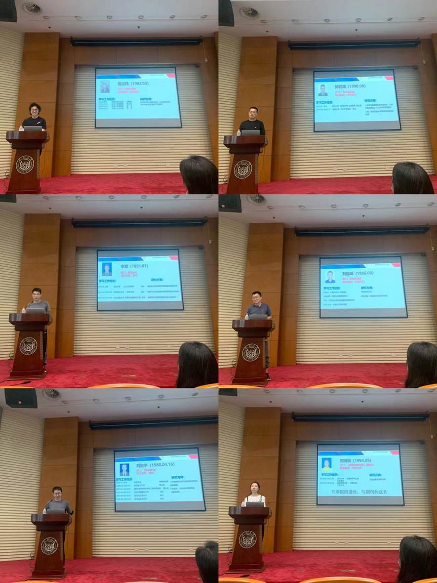 最后,今年新进教职员工进行自我介绍。他们分别是陈志炜、郭君渊、李斌、刘超峰、刘冠宇、刘婉琪、潘争辉、单鑫、王子阁、向震、杨洁、杨龙、郑威(以姓氏拼音顺序进行排序)。热烈欢迎各位老师加入同济材料的大家庭!
