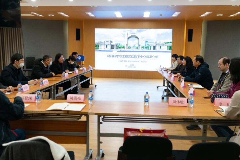 实验教学中心的基本情况以及在实验中心队伍建设、实验室安全管理、虚拟仿真实验建设、实验教学课程建设等方面的宝贵经验。交流结束后,调研队伍前往交通大学材料黄片