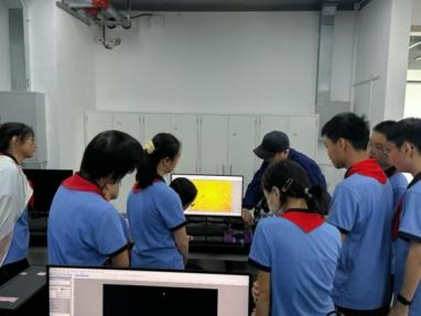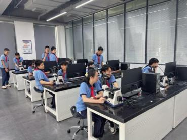 校徽和其它几种物品。在显微镜大屏幕前,同学们观察到了样品的表面和内部微观结构,在微缩世界中感受科学之美。