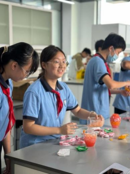 夏令营行程的最后半天,同学们参与了化学系列实验和流体系列实验,将实验理论与生活中事物所蕴含的科学现象相结合,加深了同学们的理解。在这次活动中,同学们展现出了对实验的浓厚兴趣和对新知识的渴求。整个过程中大家都积极提问,展现了良好的学习能力和求知精神。