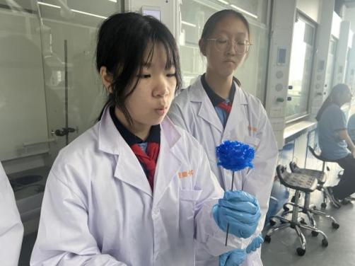 首日的活动有高分子吸水树脂、陶瓷彩绘和制作硫酸铜晶体玫瑰,这些实验不仅是对知识的应用,更是对同学们创新和动手能力的挑战。在实验教学中心老师和研究生助教的带领下,大家深入了解了不同材料的结构、性质和原理,积极动手制作,加入自己的想象力和创造力,完成了多个样品的制作。