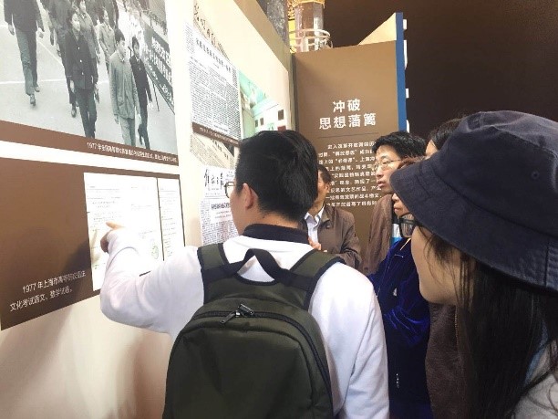 在人头攒动的展览会场,同学们一边津津有味地参观,一边感叹上海这一改革开放排头兵这些年的飞速发展。满载国民情怀的桑塔纳从商务用车变成了私家车,老式公房“平改坡”、“上海购物”几十年变迁巨大、陆家嘴的繁华景象今非昔比……