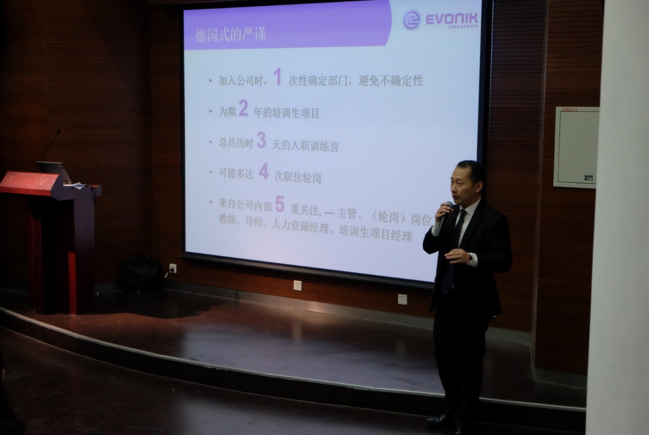 赢创大中华区总裁柯乐施博士首先介绍了赢创工业集团的概况、文化理念以及战略目标等情况,陈金秋博士分享了个人在赢创集团20年的发展成长经历,提到赢创的发展理念与黄片 的追求“严谨、求实、团结、创新“的校训以及“同舟共济”的合作精神不谋而合,陈金秋博士也是我校留德预备部1987届留德学生。程大年介绍了赢创2017年岗位需求和赢创管培生项目,陆芳作为同济校友分享了她在赢创成长的十年经历,深刻体会到赢创以人为本的人才培养模式。