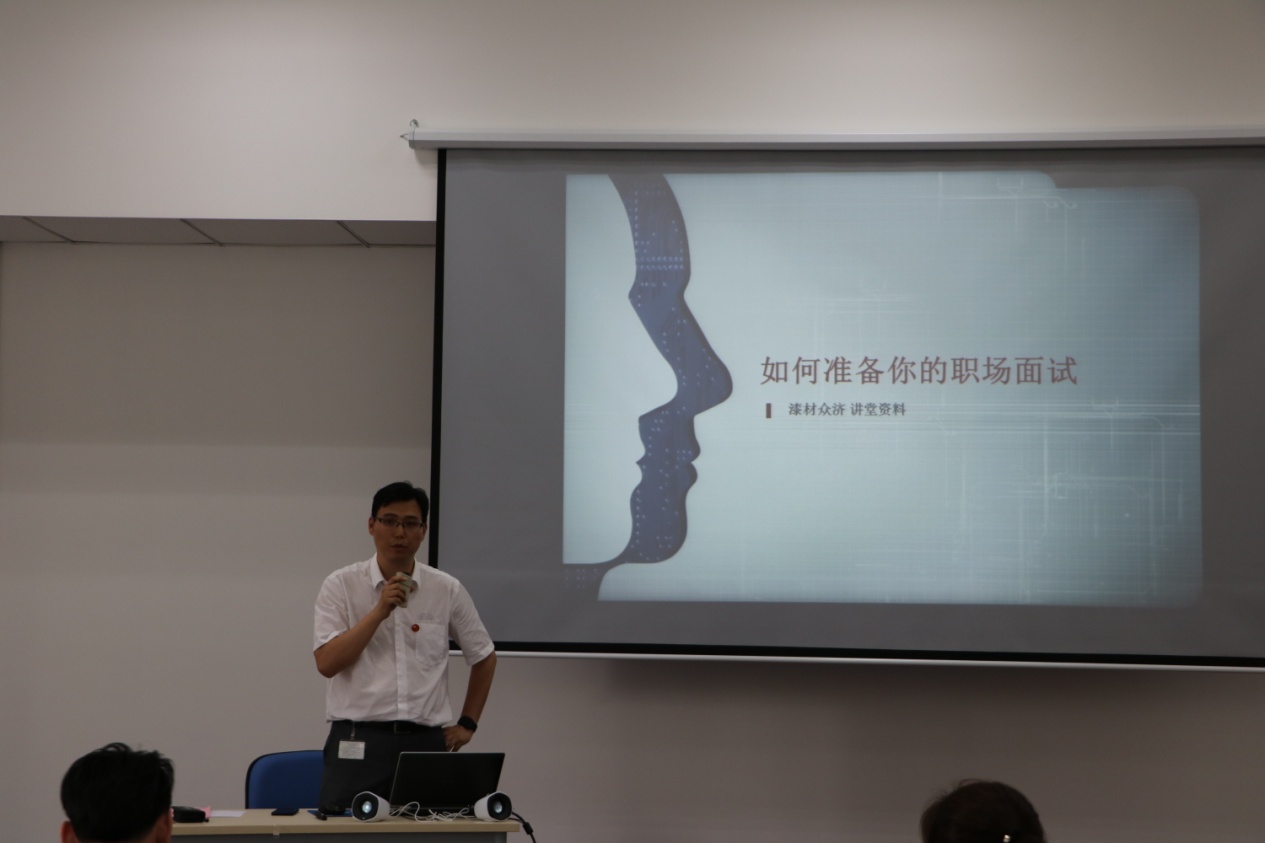 最后,来自上汽大众安亭汽车二厂的党总支书记、油漆车间高级经理曹轶同志为同学们带来了一堂“职场必修课”——专业面试要点及技巧。曹经理以一位专业资深人士的身份,为在场学生党员讲述如何写简历、如何让你的简历有亮点、面试的注意事项、用人单位的需求和关注点等等,课后学生党员们积极提问,与曹经理一起探讨“简历、面试”的相关问题,同时来自黄片