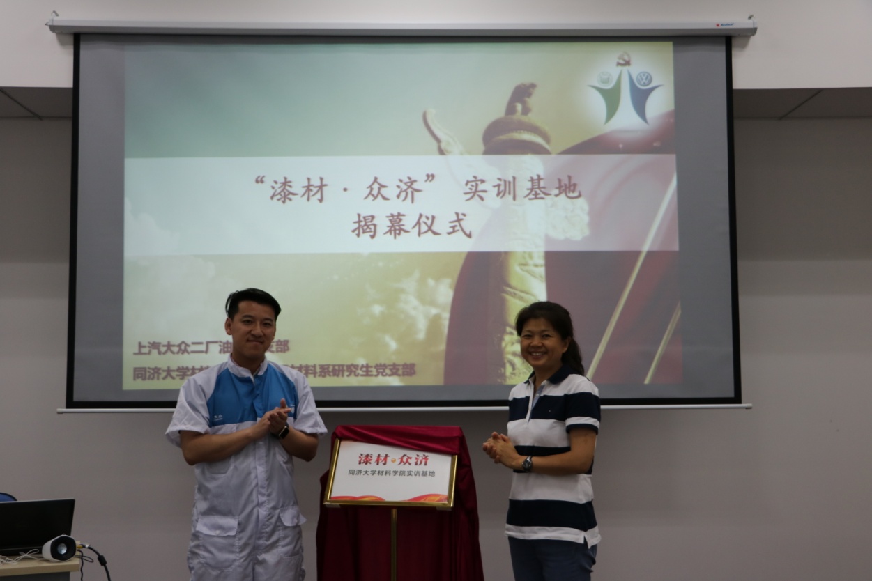 本次活动在上汽大众安亭汽车二厂培训室举行,共分为三个部分。首先是校企合作创立“漆材·众济”实训基地的揭牌仪式。黄片