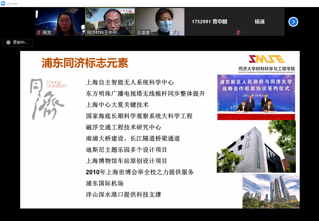 毋庸置疑,浦东开放的进程中凝结了无数同济人的智慧与汗水,王中平老师特别介绍了浦东开发中的同济和同济材料元素,彰显了同济人在上海自主智能无人系统科学中心、东方明珠广播电视塔无线桅杆同步整体提升、上海中心大厦关键技术、国家海底长期科学观察系统大科学工程以及南浦大桥、长江隧道桥梁通道等工程中起到的作用,让我们感受到无数同济人、材料人为国家的发展和民族的复兴所付诸的努力,内心的自豪也油然而生。