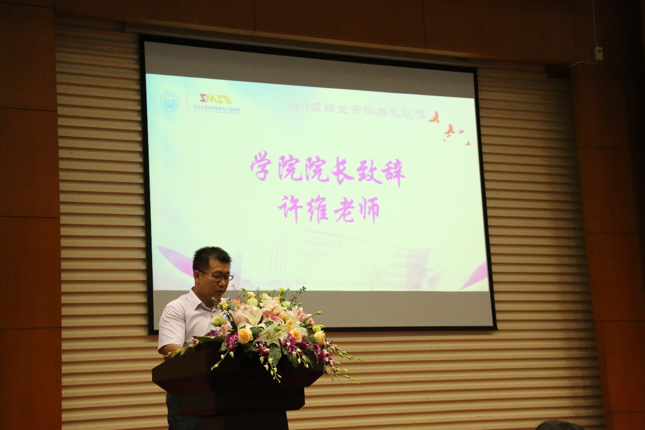 的人才培养理念。许院长对即将开展研究生生活的研究生新生们提出了几点期许:一要初心不渝、牢记使命,做一名心怀天下的同济材料人;二要格物致知,做一名深耕创新的同济材料人;三要不畏艰难,做一名百折不挠的同济材料人。最后,许院长希望同学们作为新时代中国青年,担负起民族复兴的时代责任与历史使命,在担当中历练,在尽责中成长,成为引领科技创新的主力军、当下华章的执笔者、未来道路的开创者,锐意进取,志存高远,努力成为祖国建设的栋梁之才!