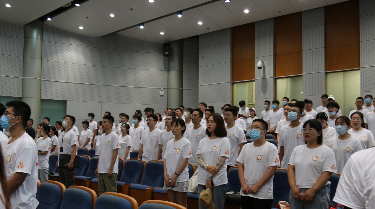 典礼伊始,全体师生奏唱中华人民共和国国歌,同学们朝气蓬勃、意气风发,用有力和高昂的歌声表达了自己对研究生新生活的兴奋和期待。