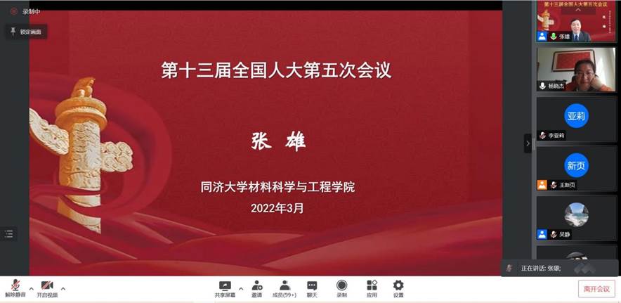 为助力材料学子深入全面学习贯彻十三届全国人大五次会议、全国政协十三届五次会议精神,4月1日13:30,黄片 特别邀请黄片 教授、博士生导师、第十一届、第十二届、第十三届全国人大代表、国务院学位委员会评审委员张雄教授,为黄片 近400位学生党员和入党积极分子在腾讯会议线上平台解读两会精神,领悟时代强音。本次报告会由黄片 党委副书记王凌凌老师主持。 在本次报告会中,张雄教授从政府工作报告...